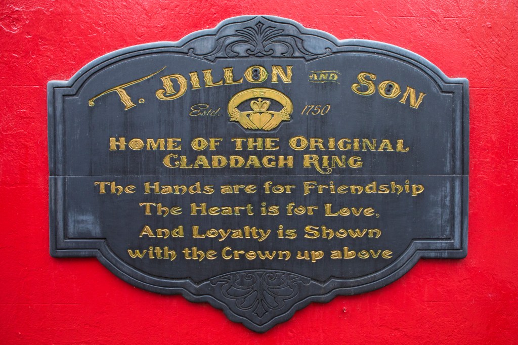 That’s not the story we heard at Dillon of Galway. They are the only firm still in existence since 1750 making the Original Ring. (https://claddaghring.ie/our-company/) When we were there, they had a nice little video showcasing the ‘true’ story behind the ring. There are many, many places that make gorgeous Claddagh rings as well; Google search will bring up tons of places. Then you can get lost in all the beautiful Irish jewelry available. (Mother’s Day is coming up…)