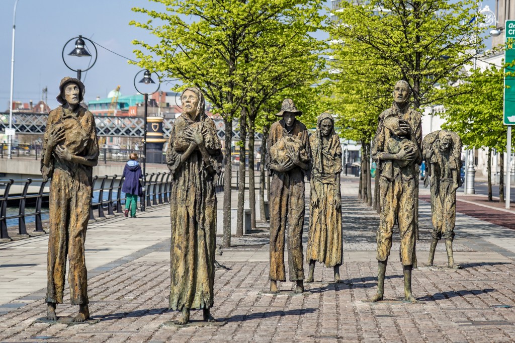 Then came the Gorta Mór—the Great Hunger—in the mid-1840s. When the potato crop failed, millions of Irish people faced starvation. Sadly, England’s response was inadequate; instead of helping, they even sent food from Ireland to England. Families were evicted from their homes, left with nothing, and many consider the famine to be an act of genocide. Millions died, and millions more emigrated—Ireland’s population was halved, and the country is still in the process of recovery today. If you visit Ireland, you’ll see hundreds of abandoned homes, known as Famine Homes, scattered across the landscape as silent reminders of that tragedy.